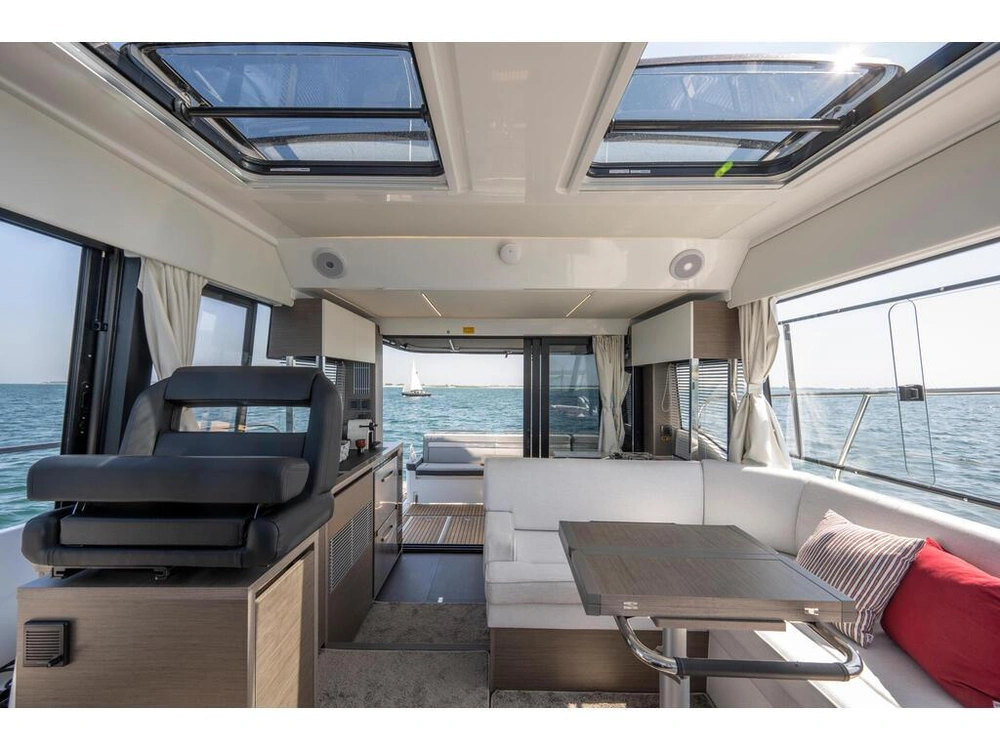 Nouveau modèle très attendu est idéal pour les week end ou les croisière de longues durées. Elle conserve les atouts de la ligne : polyvalence, conception modulaire, espace et aménagements innovants. Le nouveau salon confortable et accueillant est baigné de lumière naturelle avec une vue à 360 degrés. Deux verres à grande ouverture trappes sur le toit de la timonerie, porte coulissante bâbord et coulissante arrière portes offrant une ventilation supplémentaire. Ce bateau de 40 pieds a été conçu pour être exceptionnellement facile à manipuler, avec des commandes intuitives pour une accessibilité améliorée et maniabilité. Le NC 1295 Coupé offre une croisière stable et confortable et un planage sans effort pour une expérience fluide et agréable sur l’eau.