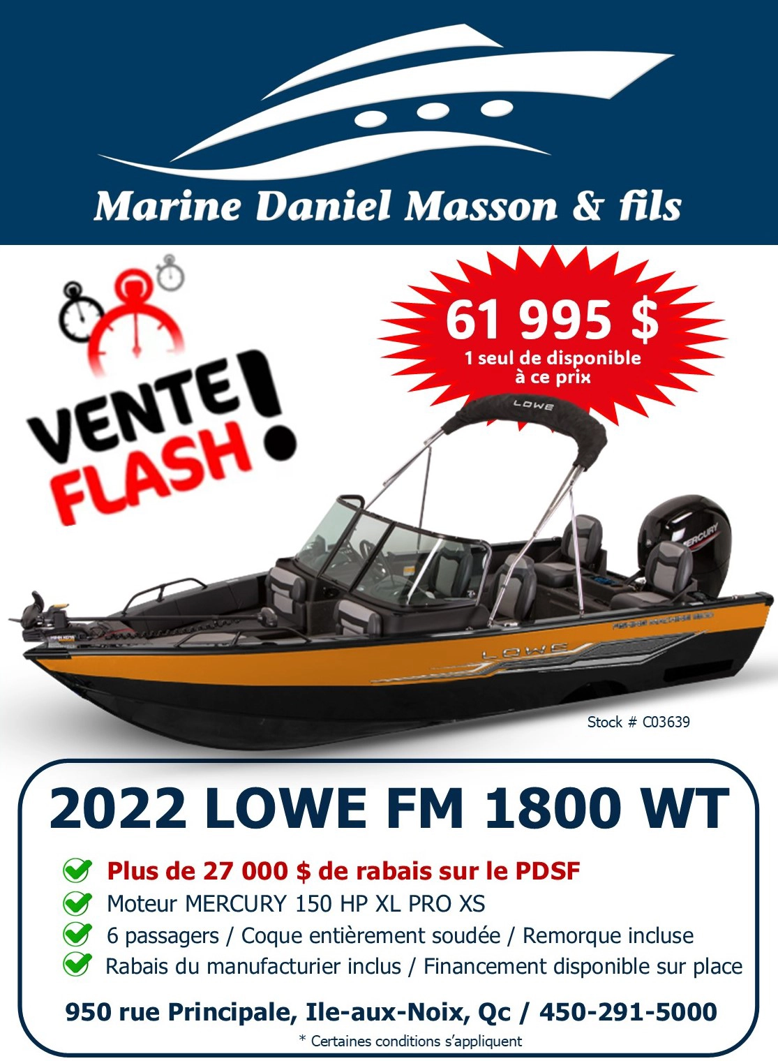 C’est le moment de faire une bonne prise ! Faites vite, avant qu’il ne soit trop tard. Nos bateaux de pêche LOWE BOATS sont en liquidation! Quantités limitées, partez à la pêche aux aubaines!